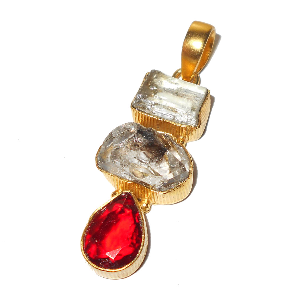 Herkimer diamond, Crystal quartz G - RBJ925- Handmade fashion Brass Pendants