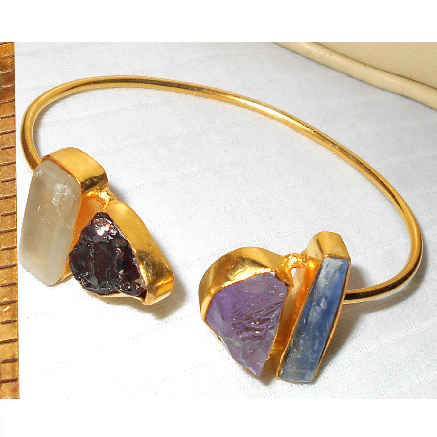 Kyanite, Garnet, Amethyst, Kunzite O - RBB998-Graceful Fashion Bangle with gold plated matte finish