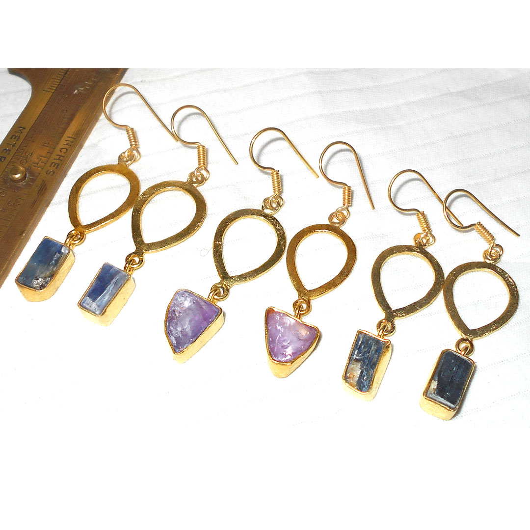 Latest Fashion brass with gold plated matte finish Earrings with-Carnelian, Aqua, Kyanite Rough-BVP986-Carnelian, Aqua, Kyanite..