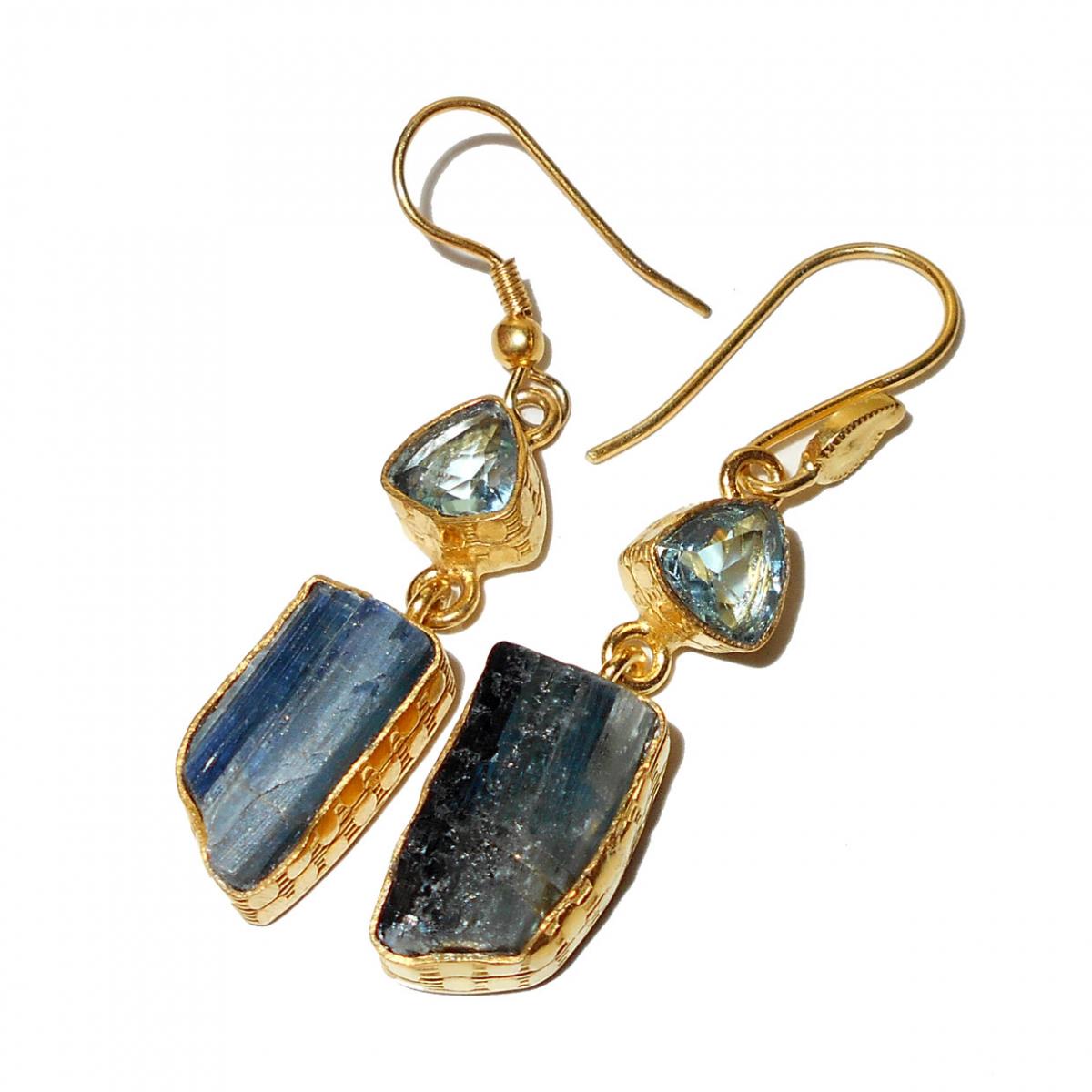 Genuine Raw gemstone Earrings, Raw gems gold plated Earrings-RBE974..