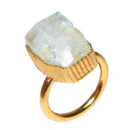 Rainbow moonstone O - RBR936- Raw gemstone Brass Fashion Rings