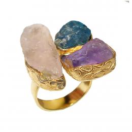 Rose quartz, Amethyst, Apatite C - RBR944-Stylish fashion Chunky Brass gold vermeil Rings -RBR944