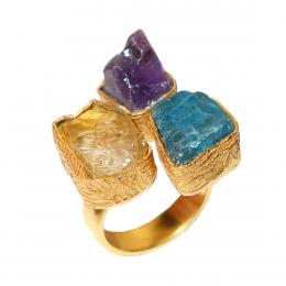 Citrine, Apatite, Amethyst B - RBR944-Stylish fashion Chunky Brass gold vermeil Rings -RBR944
