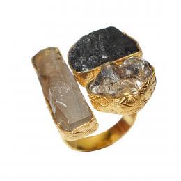 Smokey quartz, Herkimer diamond, Tourmaline Black O - RBR944-Stylish fashion Chunky Brass gold vermeil Rings -RBR944