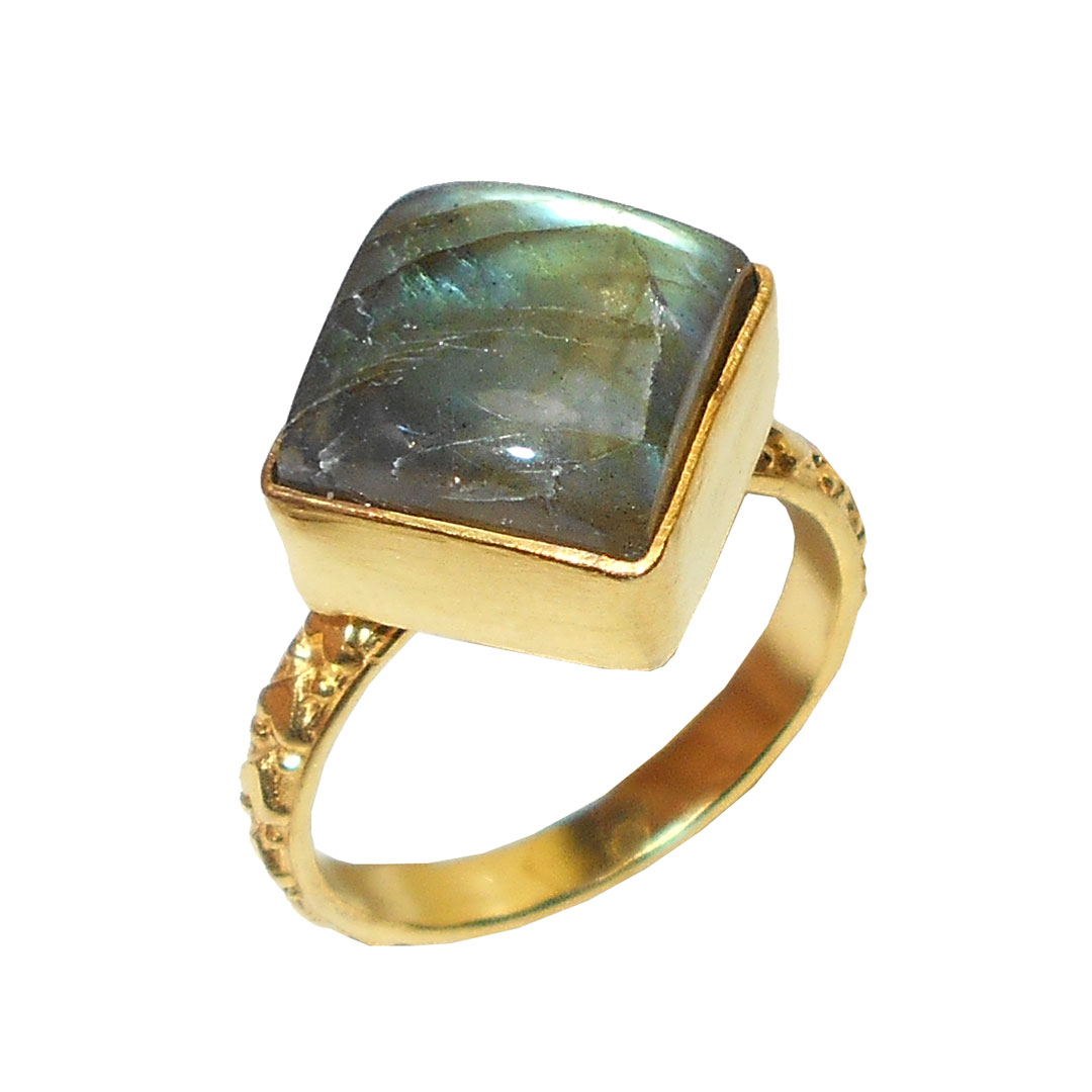 Labradorite cab D - PR987- Beautiful Handmade Rings with Yellow gold & Rose gold ver