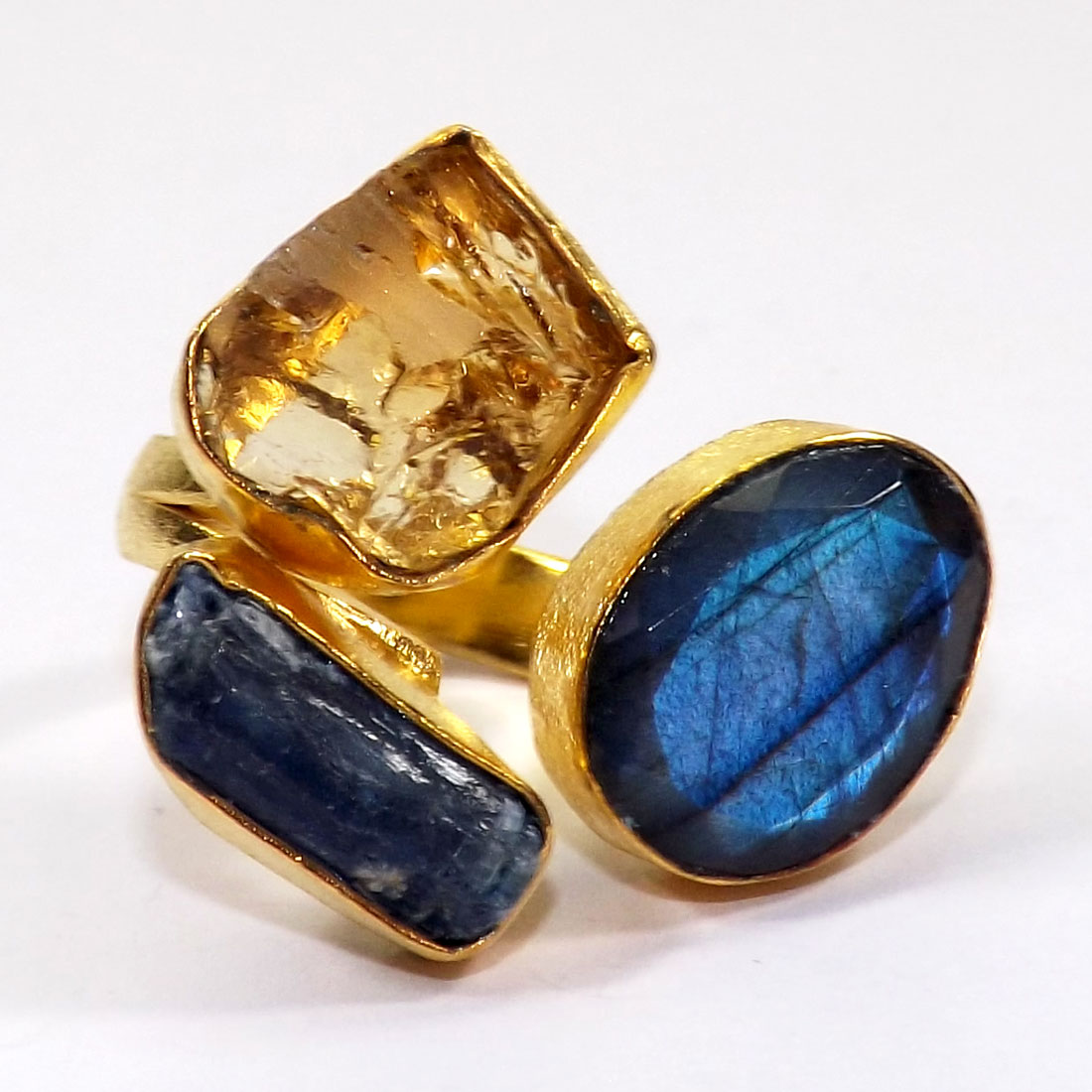 Labradorite Citrine and Kynite E - BRR992-Gemstone Made in Brass with Gold Plated Vermeil