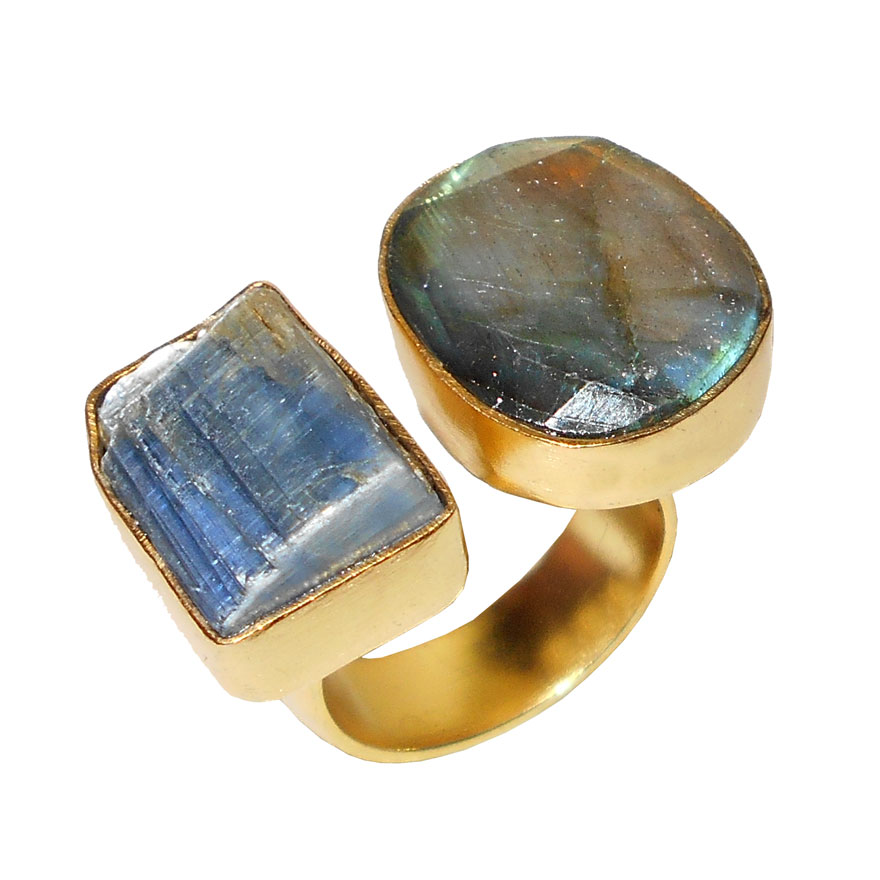 Labradorite cut & Kyanite F - RBR969- Fabulous gold vermeil Rings with semiprecious gemstone