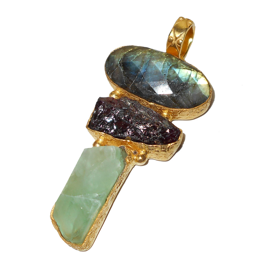 Labradorite cut, Garnet, Green fluorite A - RBJ970-Inukshuk Fashion Trend Pendants, Jewelry with gold plated