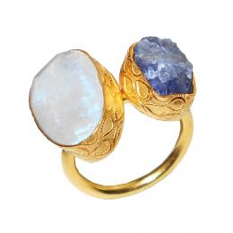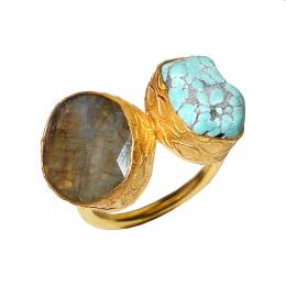 Labradorite, Tanzanite O - RBR927- Heart Beat fashion designer Rings with gold vermeil over