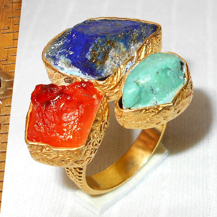 Lapis, Carnelian, Tibet Turquoise A - RBJ949- Latest fashion Costume cluster gold plated Rings