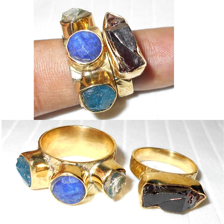 Lapis lazuli, Aqua, Garnet D - STR990-Beautiful stacking Rings with gemstone stud