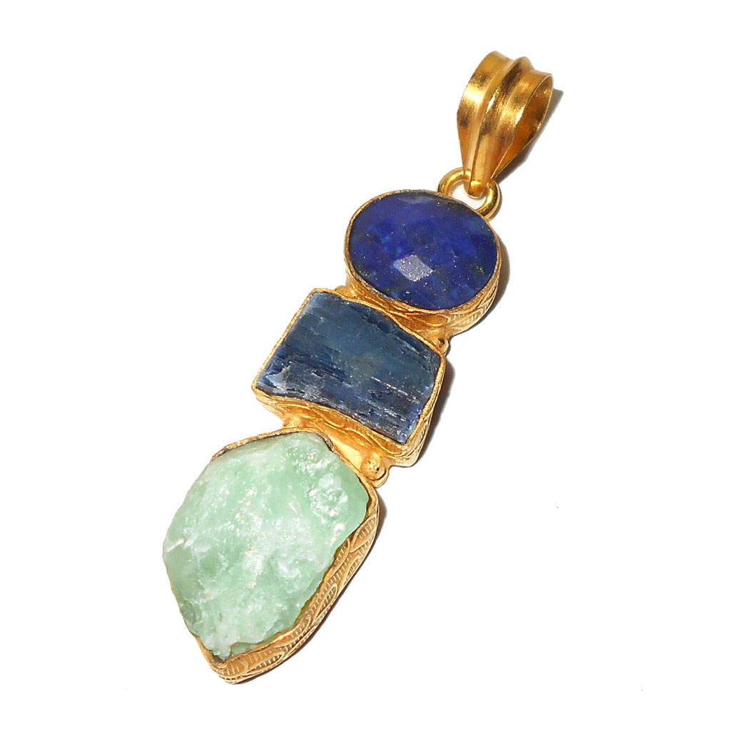 Lapis lazuli, Kyanite blue, Tourmaline Green G - RBJ927-Natural gemstone with Brass gold Plated Pendants wholesal