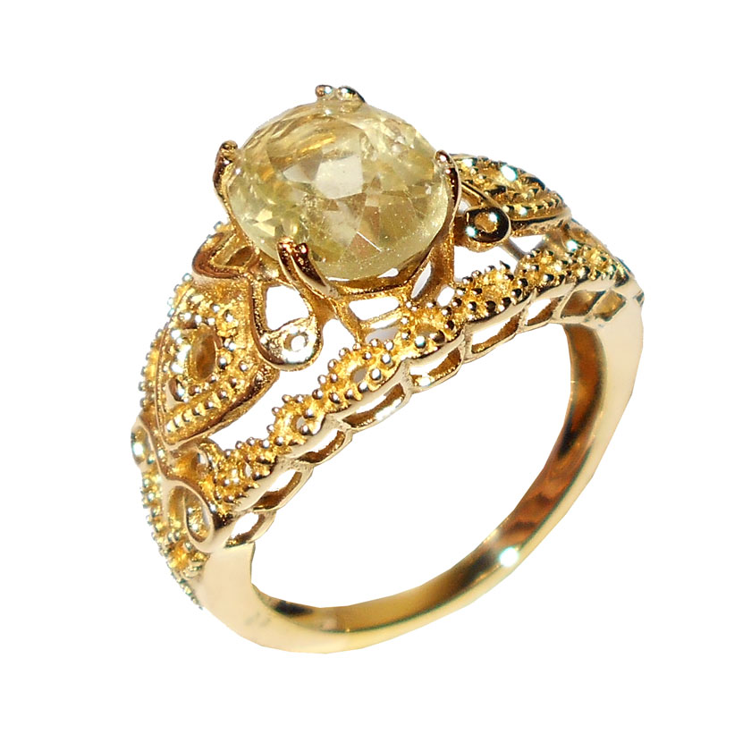 Lemon quartz cut A - BSR850- Designer Brass Rings with yellow gold vermeil wholesale