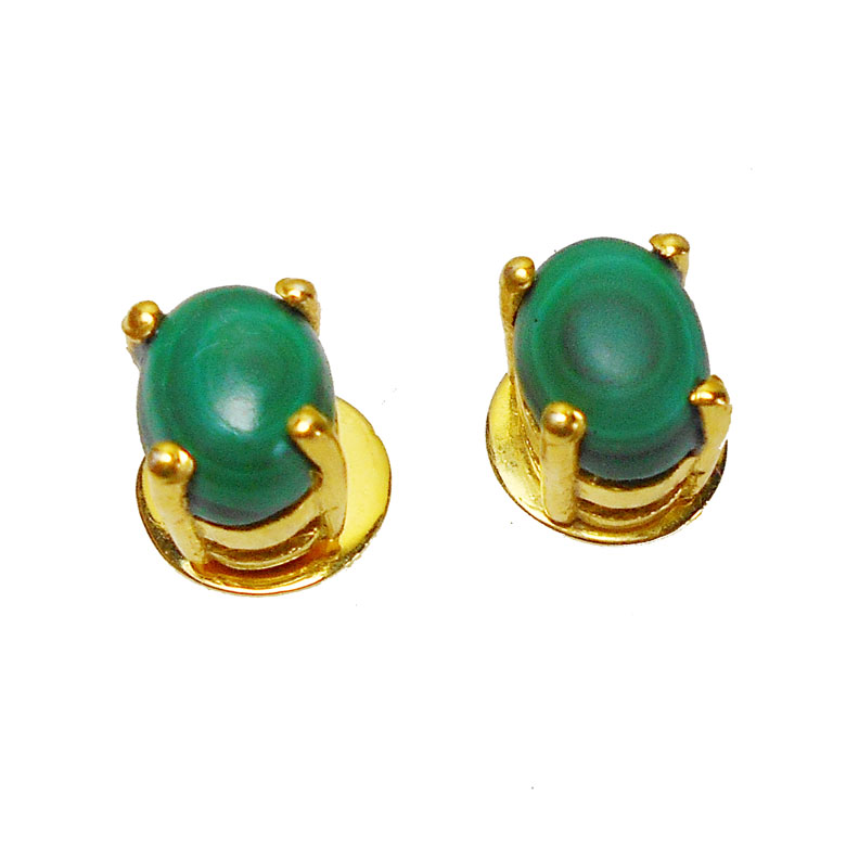 Malachite cab H - STD991- 6x8 mm Oval Semiprecious gemstone stud Earrings, Fashion