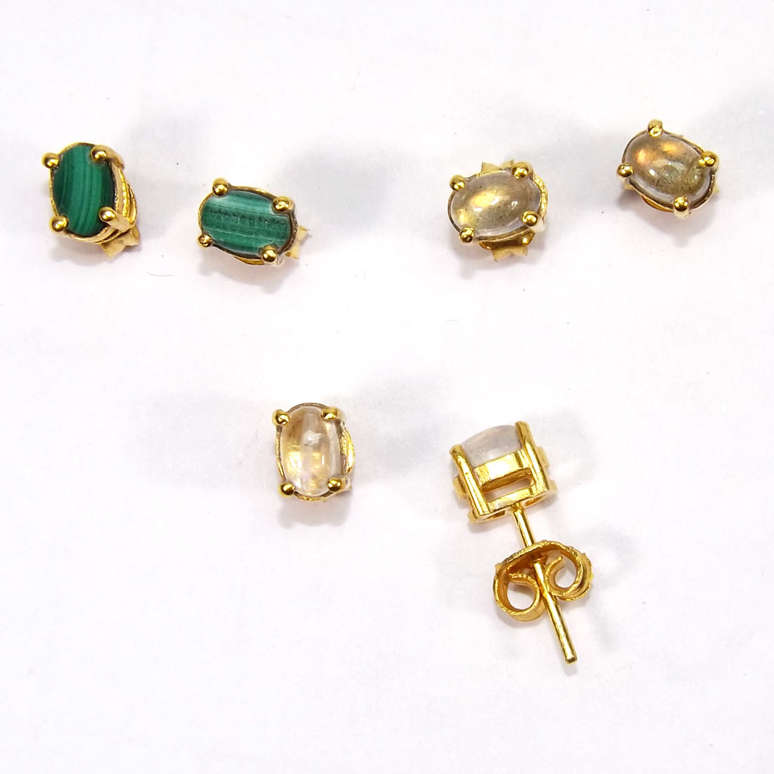 Malachite Rainbow Moonstone 3 Pair B - STD976-Wholesale Designer Brass with Gemstone Stud Earrings