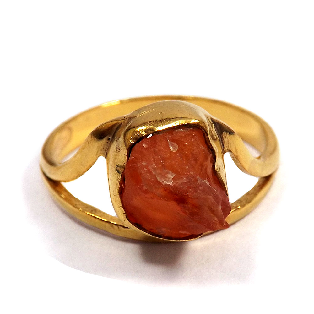 Indian Factory Made Rough Stone Plain Setting Gold Plated Brass Ring..