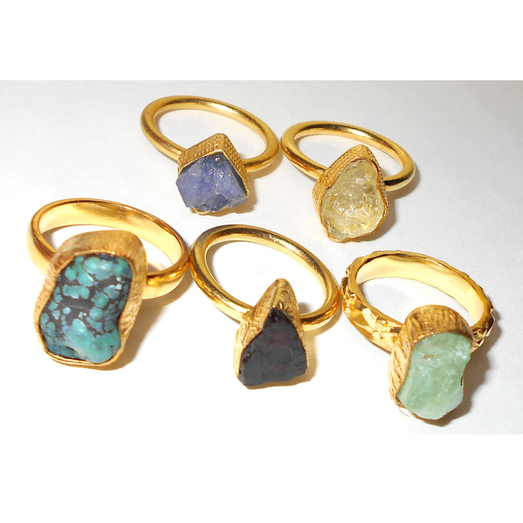 Mix Rough stone D - BVP971- 5 Pcs Brass fashion Rings wholesale value pack