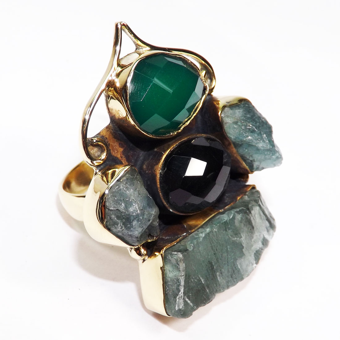 Multi Gemstone E - BCR999-Multi Gemstone Made in Brass Chunky Rings