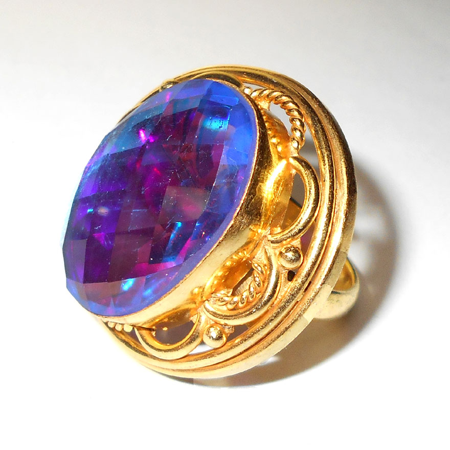 Blue hydro glass cut F - NR988-Ethnic workmanship costume fashion Rings collection