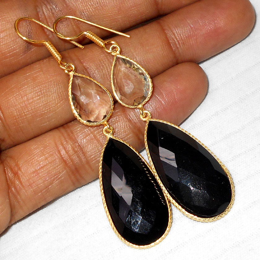 Onyx cut Hydro & Crystal quartz E - BJS988-Briolite Fashion Trend Earring with gold plated over the