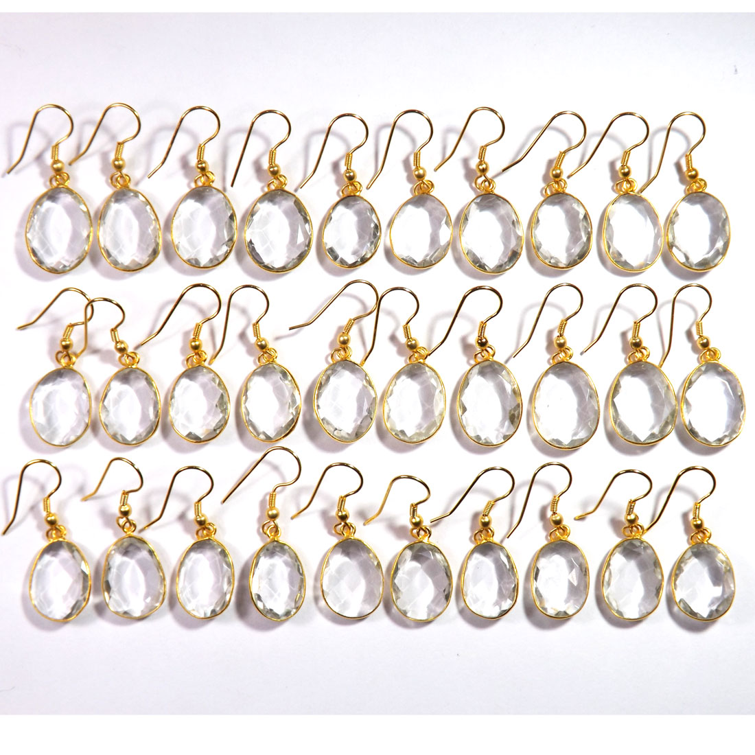 15 Pair Brass Hydro Glass Stone Bezal Hook Earrings-BVP969..