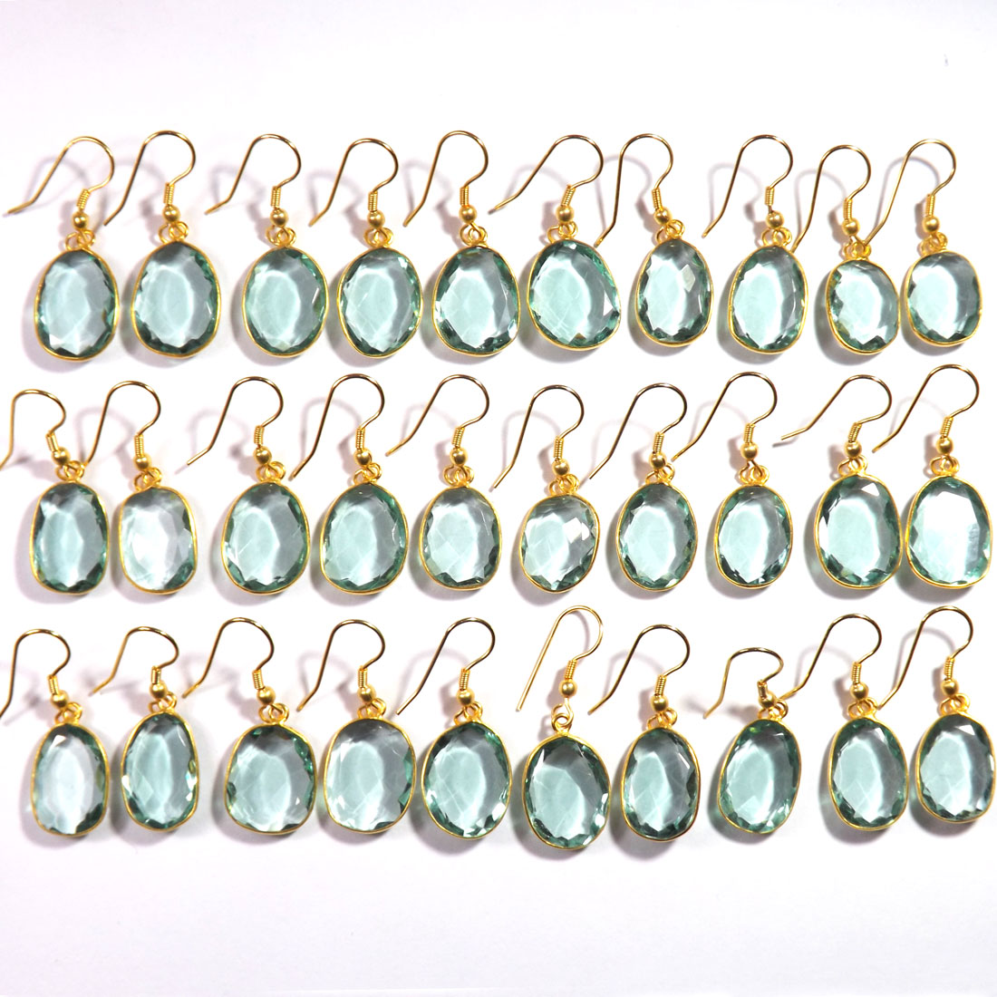 15 Pair Brass Hydro Glass Stone Bezal Hook Earrings-BVP969..