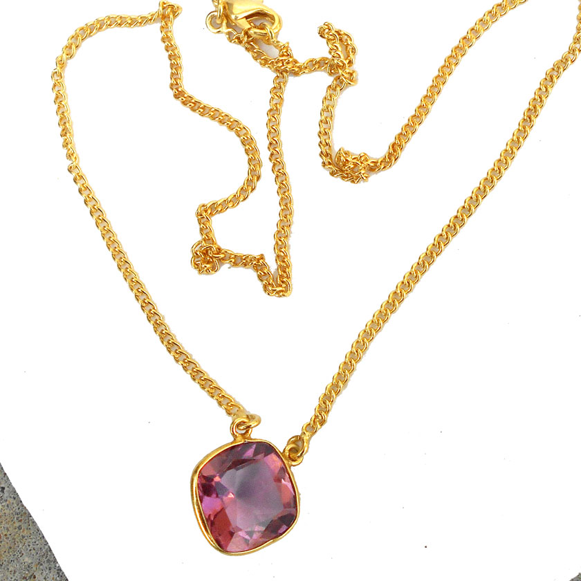 Green Amethyst cut O - BSN989- Wholesale costume fashion Necklaces with gold vermeil ov