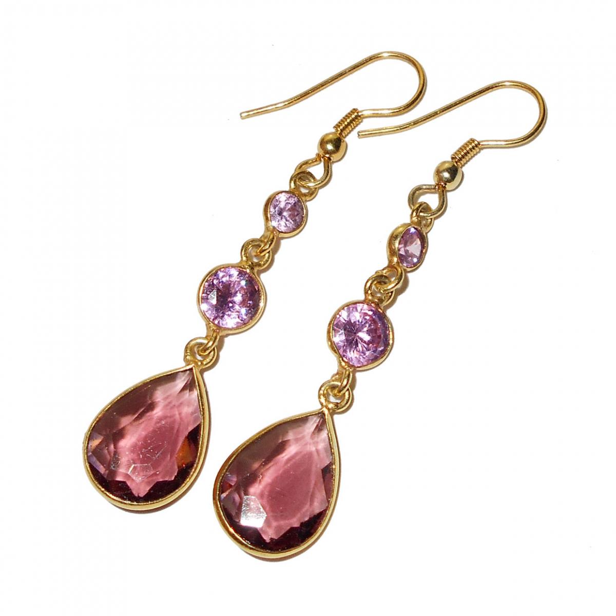 Petrol Hydro, Pink CZ D - BJS920- Western style gold vermeil Earrings, Charming fashion Ea