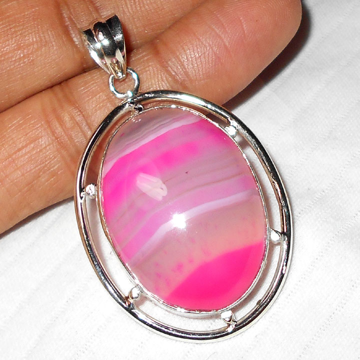 Pink lace Agate E - WMP952-White metal Fashion Designer Pendants wholesale