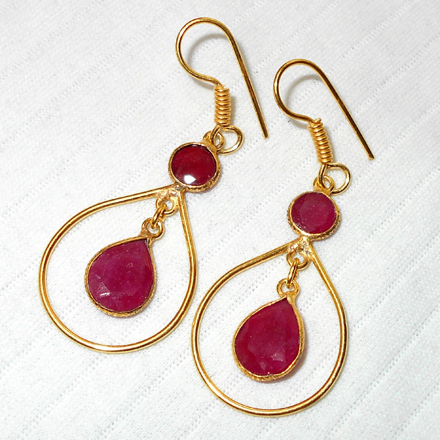 Pink Ruby corendium cut B - BJS966-Gold vermeil fashion Earrings with Brass metal