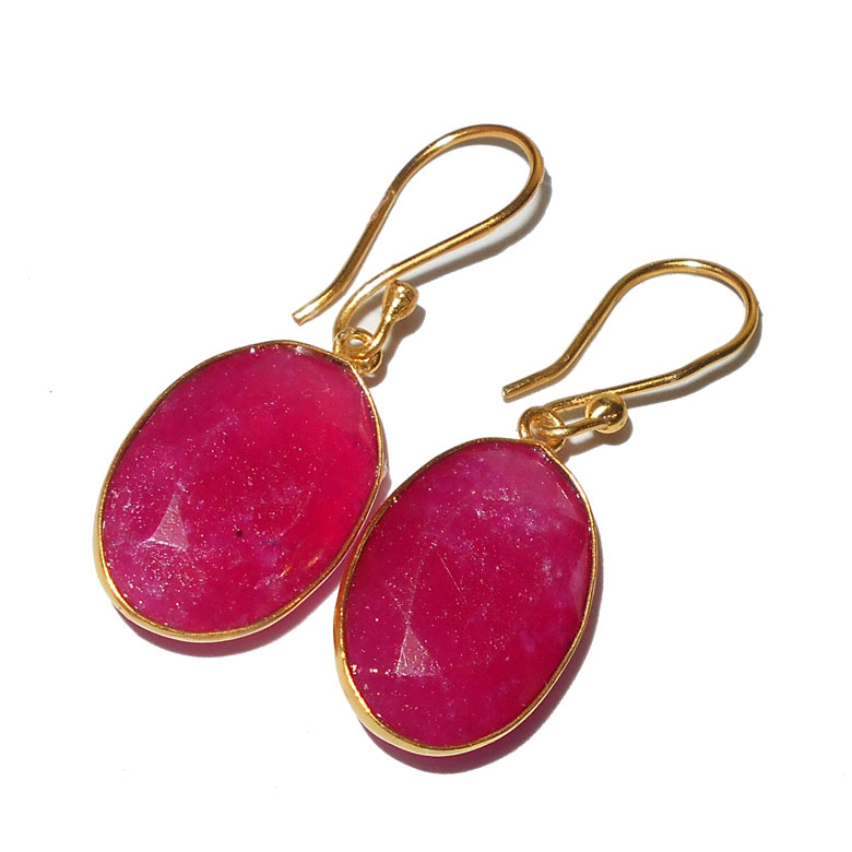 Pink Ruby corundum cut B - BJS935- Briolite fashion Trend Bezel Earrings with gold plated o
