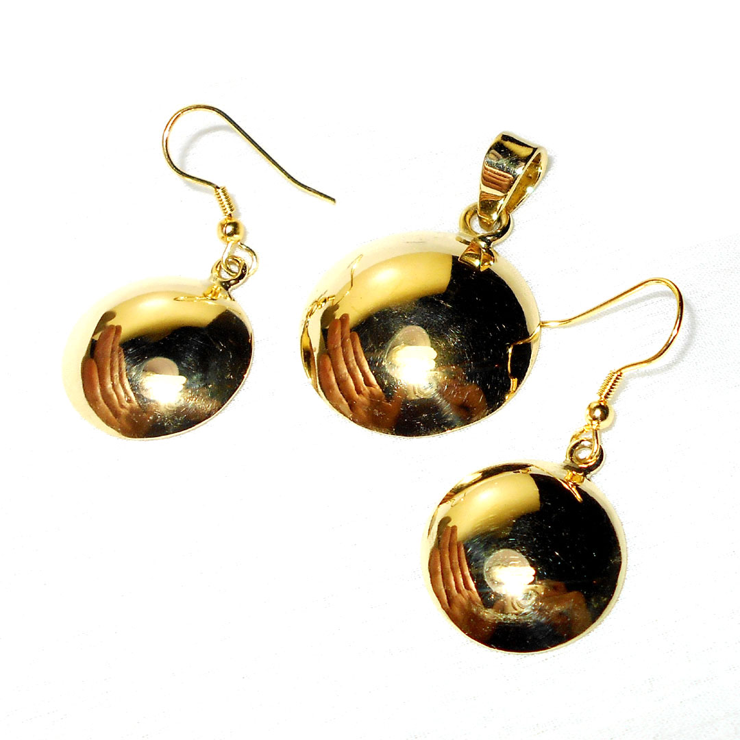 Plain Pendants & Earring C - SET988- Gold vermeil Brush finish Plain Brass pendant & Earring