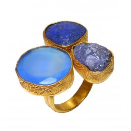 Rainbow moonstone, Aqua chalcedony, Titanium Drusy A - RBR910- Fascinated Ornaments collection wholesale store India