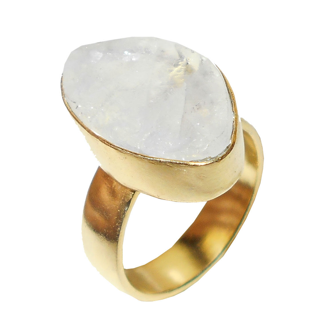Rainbow moonstone H - RBR935- Gold vermeil Brass costume Rings with Raw gemstone whole