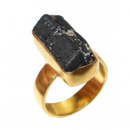 Black Tourmaline D - RBR935- Gold vermeil Brass costume Rings with Raw gemstone whole