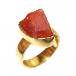 Carnelian E - RBR935- Gold vermeil Brass costume Rings with Raw gemstone whole