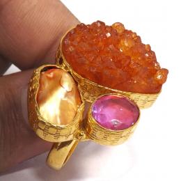 Glamorous Design Gemstone Rough Brass Chunky Rings-BCR990..