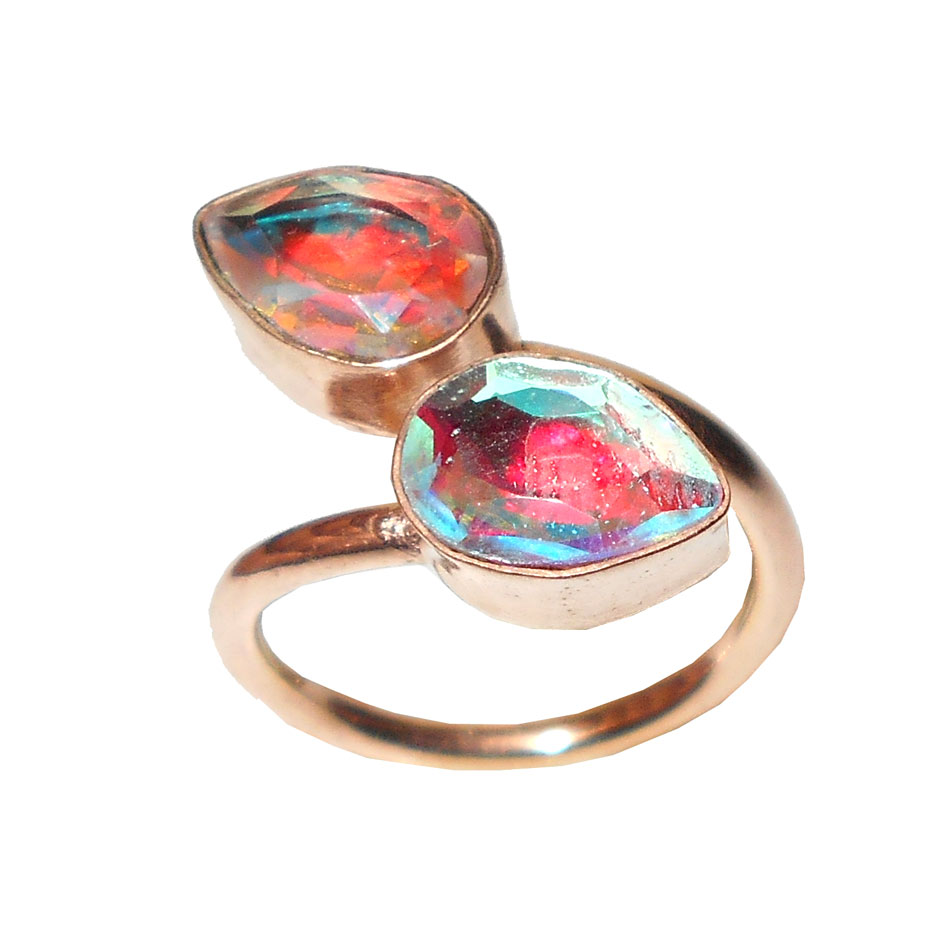 Rainbow Mystic cut E - PR976- Stylish fashion Brass Rhodium plating Ring wholesale Indi