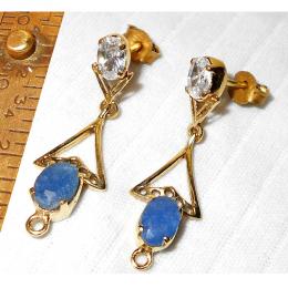 White CZ, Sapphire Corendium B - BSE987- Virgin Fashion Costume Earrings with gold plated over Br