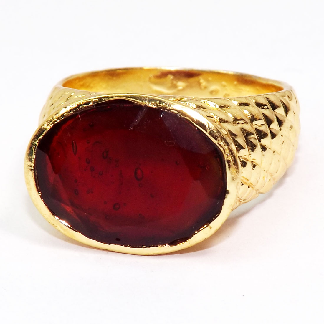 Red Hydro Glass O - CBR993-Cut Gemstone Made in Brass Casting Rings