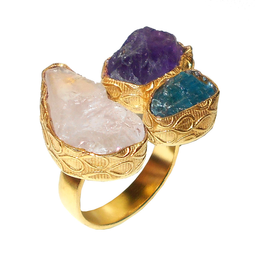 Rose quartz, Apatite, Amethyst D - RBR909- Natural Raw gemstone Cluster Rings, Chunky fashion Rings