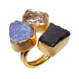 Rose quartz, Aquamarine, Black Tourmaline C - RBR970- Chunky fashion designer Rings wholesale