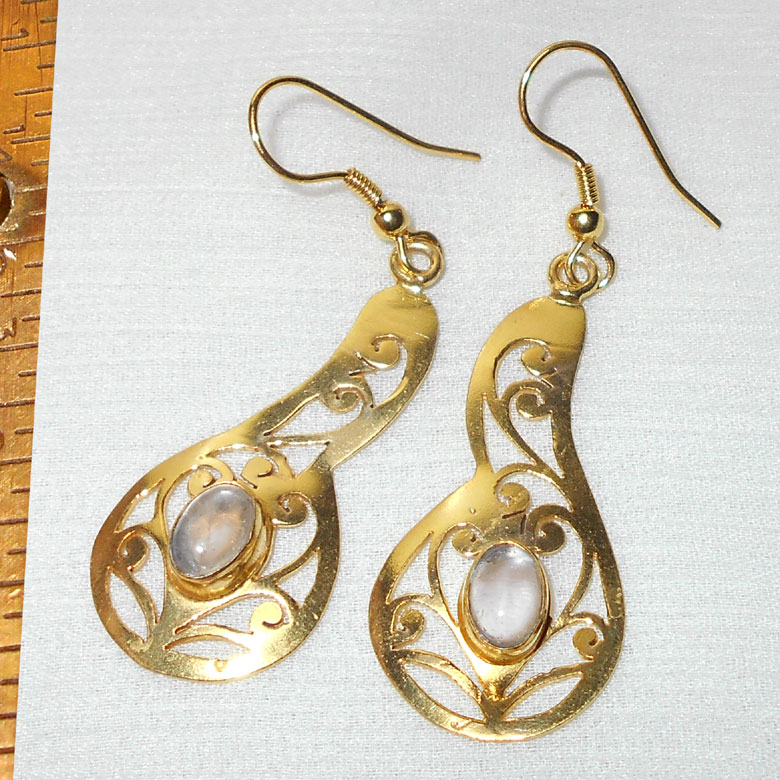 Rose quartz cab G - NE999-Ethnic style fashion Earrings with semiprecious gemstone