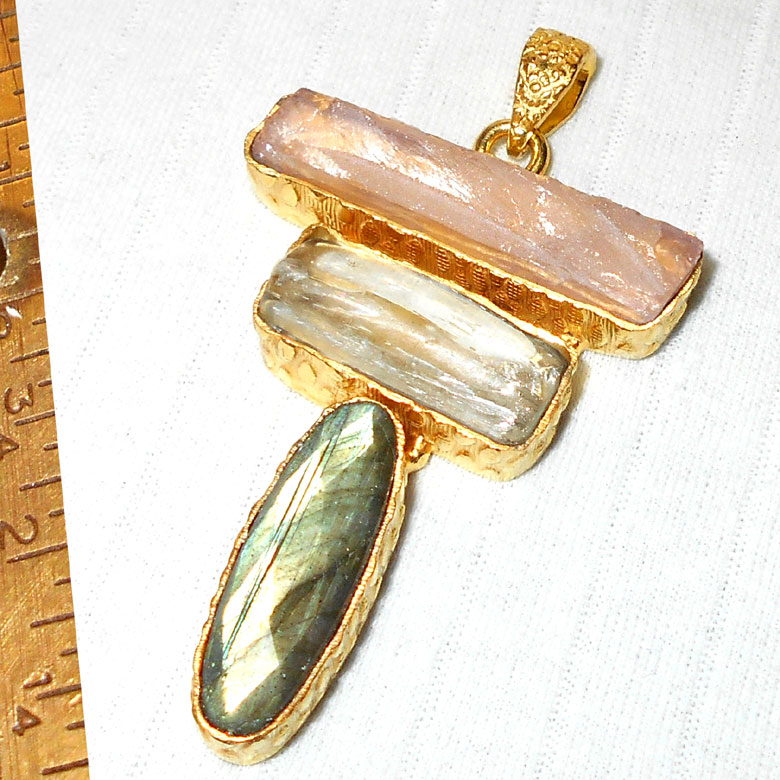 Rose quartz, Kunjite, Labradorite cut O - RBJ970-Inukshuk Fashion Trend Pendants, Jewelry with gold plated