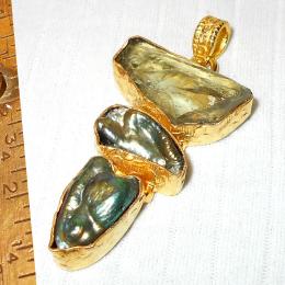 Green Amethyst, Biwa Pearl B - RBJ970-Inukshuk Fashion Trend Pendants, Jewelry with gold plated