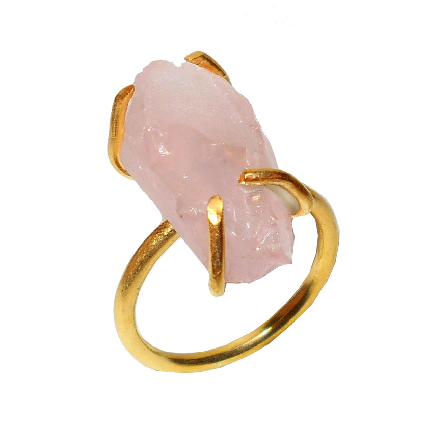 Rose quartz J - RBR912- Prong Setting gold vermeil Rings wholesale