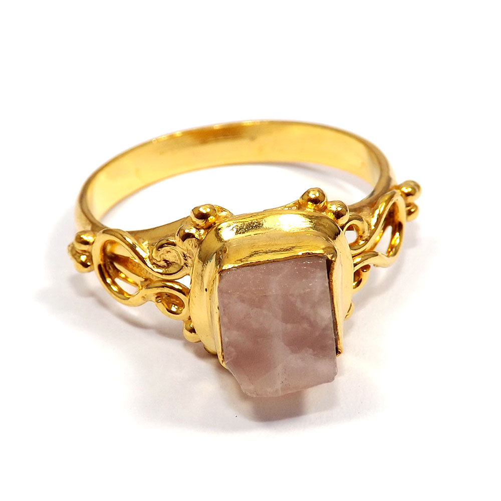 Indian Factory Made Rose Quartz Rough Stone Gold Plated Brass Ring..