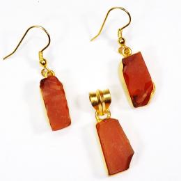Rough Carnelian Gemstone Made in Brass with Gold Plated Vermeil Earring Pendant Set-SET980