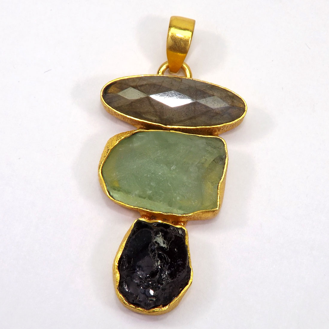 Amethyst Citrine and Green Amethyst A - RBJ919-Gemstone Brass with Gold Plated Vermeil Pendants