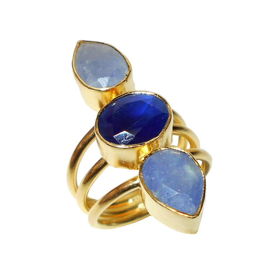 Blue Chalcedony A - PR972- Handmade Costume fashion gold vermeil Rings with Brass wh